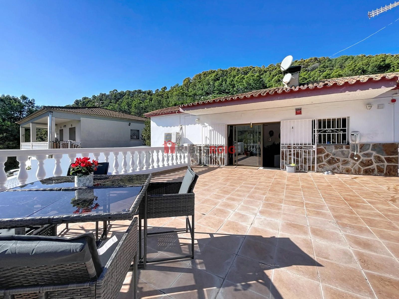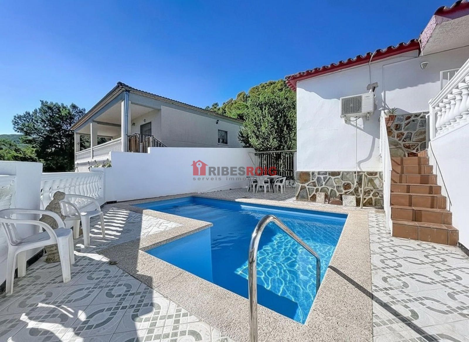 The kitchen is separate and communicates with the living room through a pass-through window, ideal for everyday use without sacrificing comfort. Outside you will enjoy a lovely entrance porch, two large terraces, and an outdoor dining area next to the private pool. The conjunto is completed by a laundry room, built-in wardrobes, and window bars for greater safety and comfort.