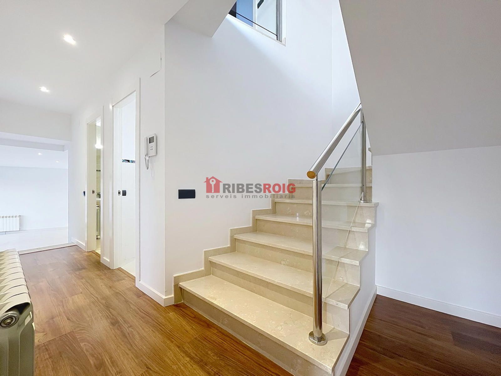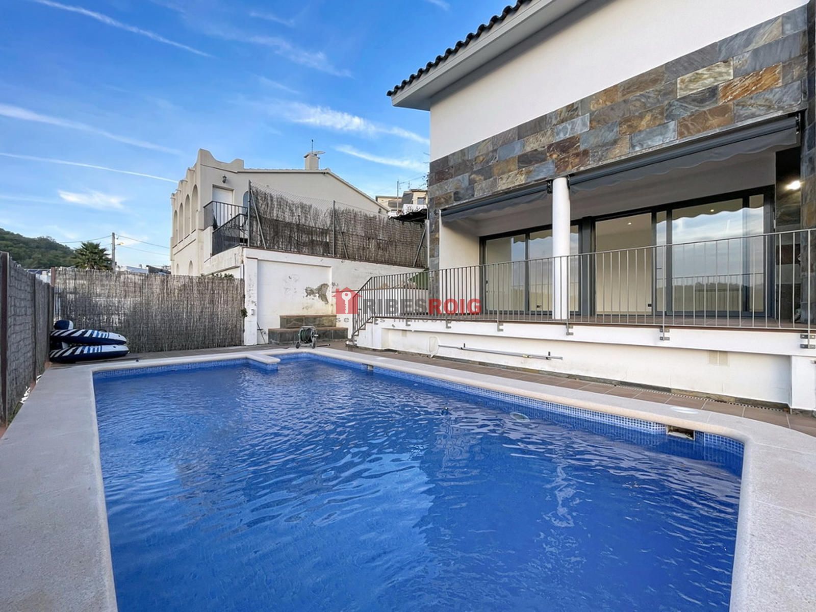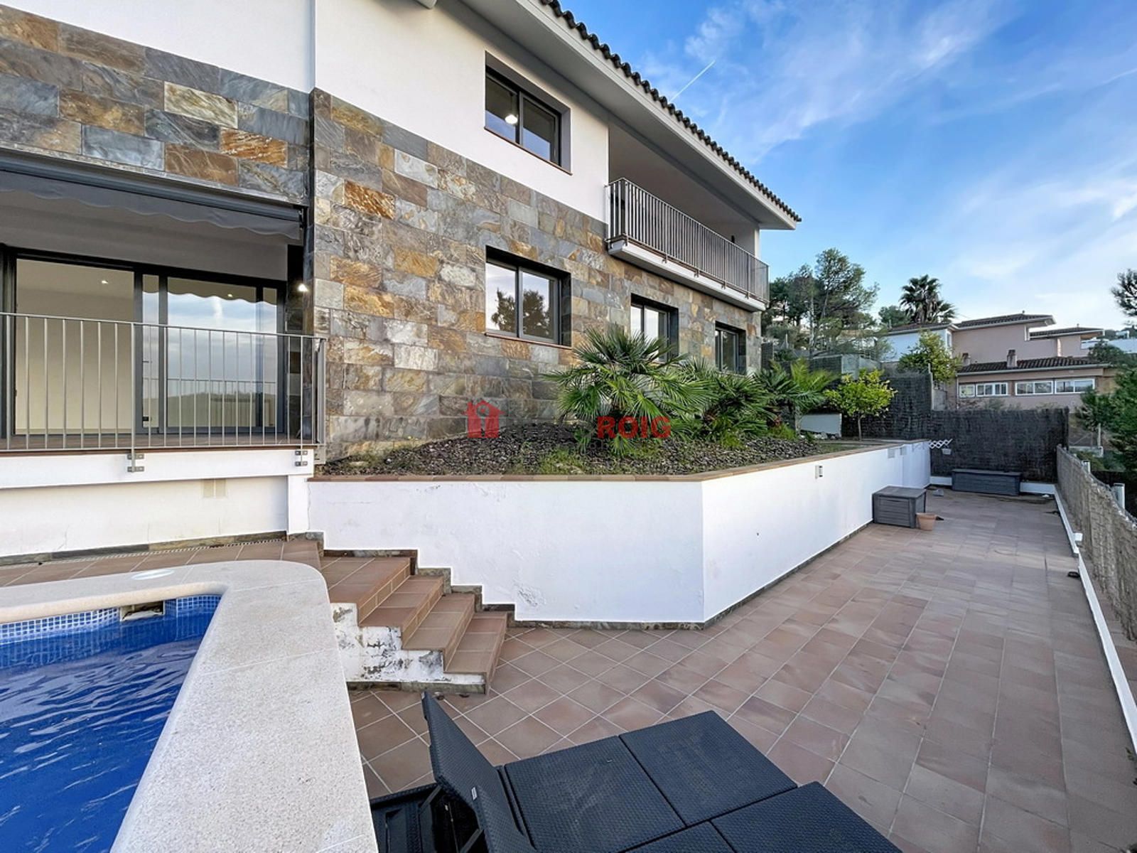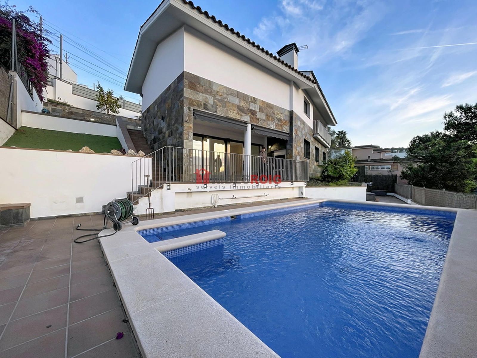 Acabados de primera calidad, suelos de gres y parquet, persianas eléctricas, calefacción de gasoil y agua caliente mediante placas solares, alarma, puertas lacadas y ventanas de aluminio con doble vidrio en color gris. Descalcificador y otros elementos de confort completan la vivienda para un uso diario práctico y eficiente. La vivienda se integra en una parcela de 450 m2 de jardín con piscina privada, ideal para disfrutar de exteriores y ocio al aire libre. El conjunto garantiza una eficiencia energética destacada gracias a la combinación de calefacción, placas solares y materiales de calidad.