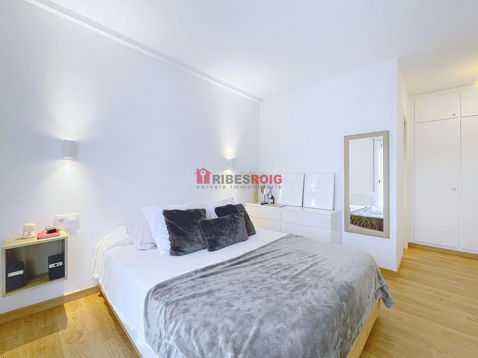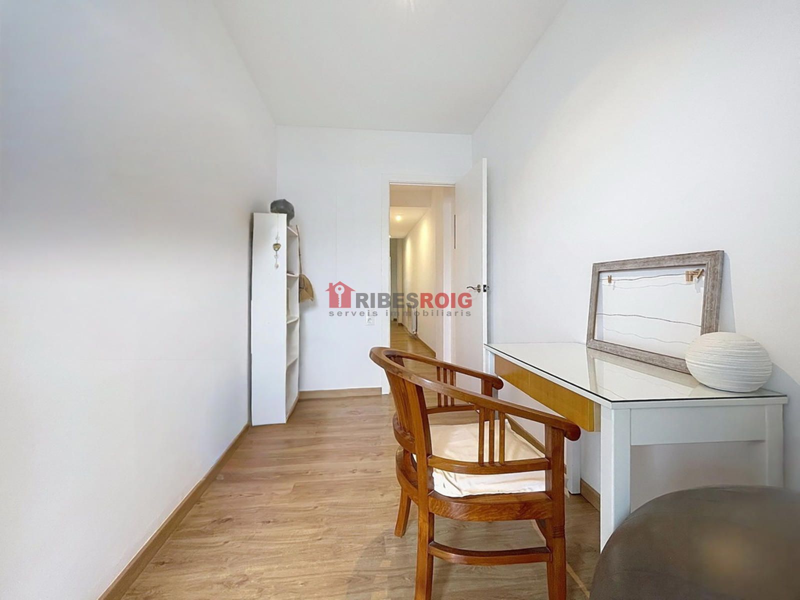 Los acabados destacan por suelos de parqué, puertas lacadas en blanco, y armarios empotrados que permiten aprovechar al máximo el espacio de almacenamiento. La instalación de aire acondicionado y calefacción a gas natural garantiza confort durante todo el año, con un consumo eficiente y fiable. La cocina, moderna y totalmente equipada, se proyecta como centro de convivencia entre la zona de día y la de descanso, manteniendo la estética limpia y contemporánea de la vivienda.