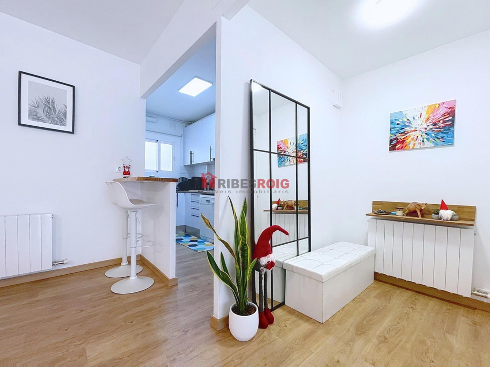 Gran piso reformado completamente en 2023, situado en pleno centro de Sant Pere de Ribes, con 102 m2 construidos y 85 m2 útiles. El inmueble cuenta con 3 habitaciones - 2 dobles -, 2 baños completos y garaje en el mismo edificio, junto a un trastero para mayor comodidad. Su distribución optimizada ofrece un salón comedor amplio que se integra con una cocina abierta, pero a la vez con ventilación propia para una mayor funcionalidad diaria. El salón tiene salida a terraza de 5 m2 orientada al sur y con vistas despejadas.